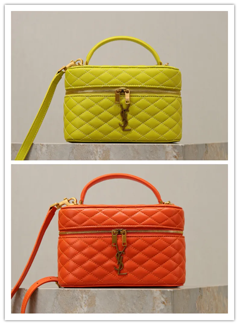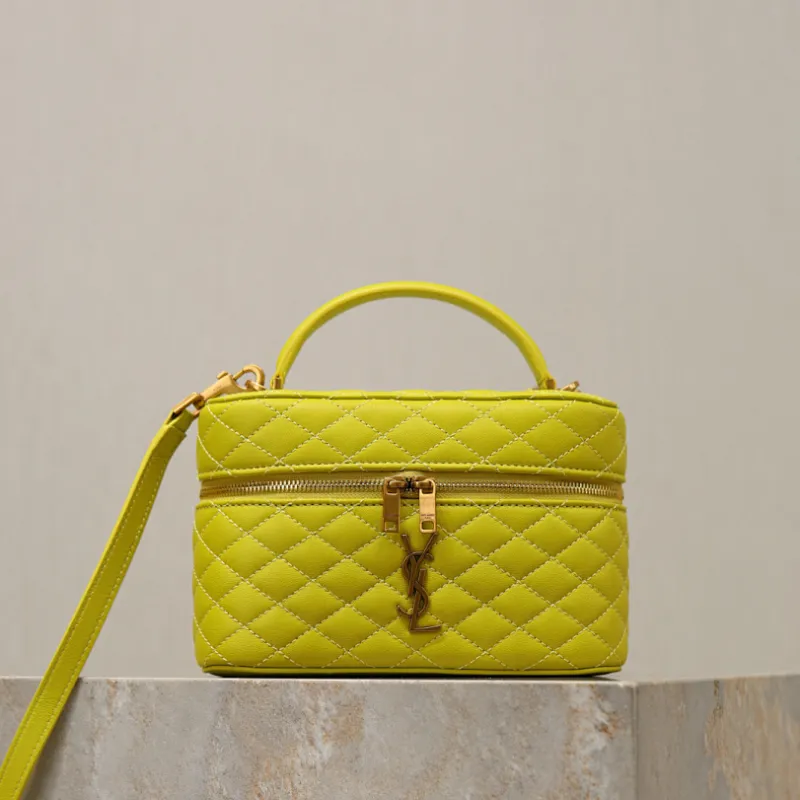 Saint Laurent GABY MINI Box Bag (766731) - Yellow, Sheepskin Quilted, Double Zipper, 18×11×6.5cm #A59996