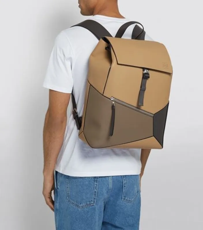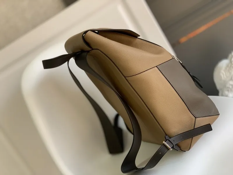 Loewe Backpack - Multi-Tone Leather Patchwork, Anagram Logo, Drawstring Closure & Zipper Pocket, Stylish Luxury Backpack for Everyday Use #A56851