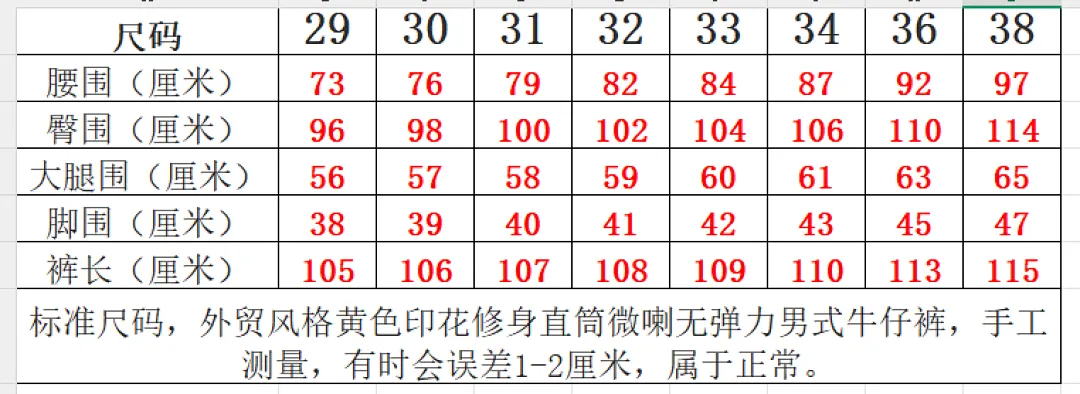 | Size | 30,32,34,36,38 |