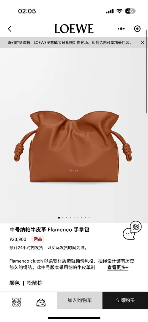 Loewe 26238 Flamenco Drawstring Pouch in Napa Calfskin Size 30x24.5x10.5CM #A62919