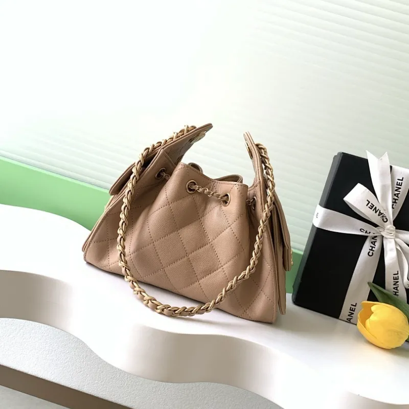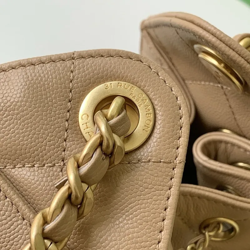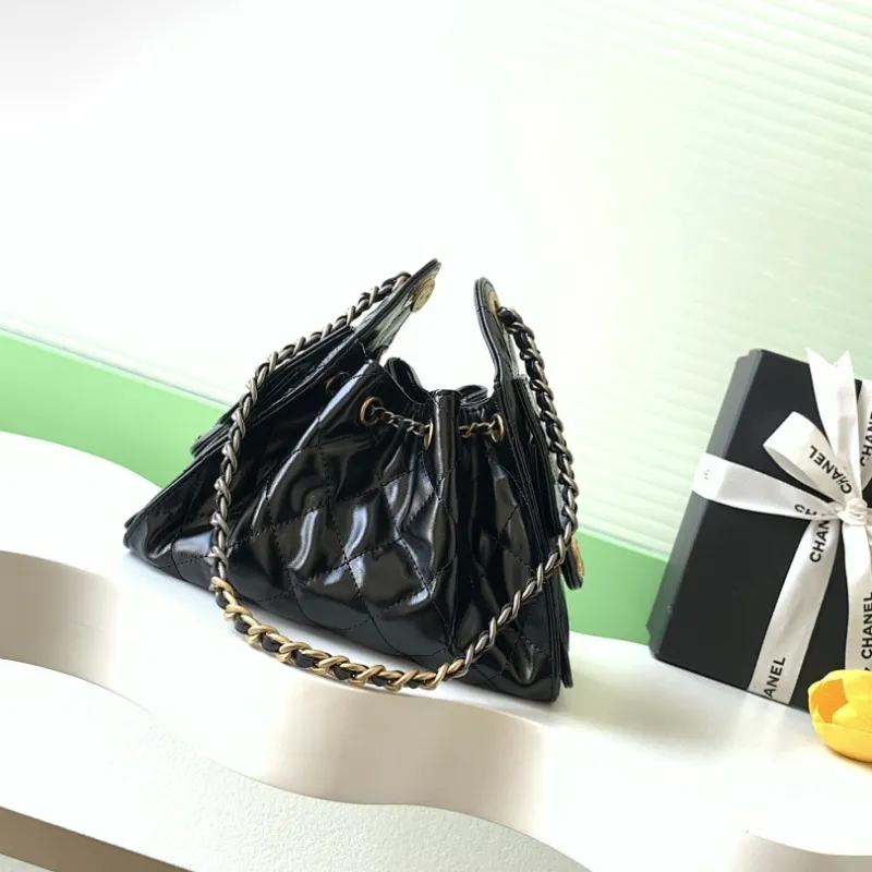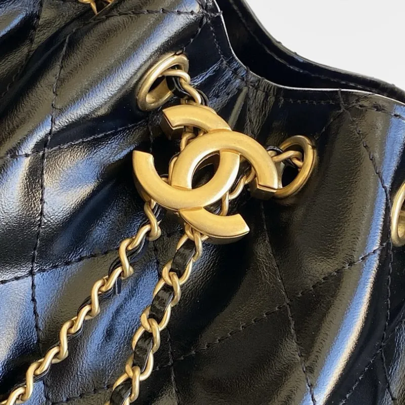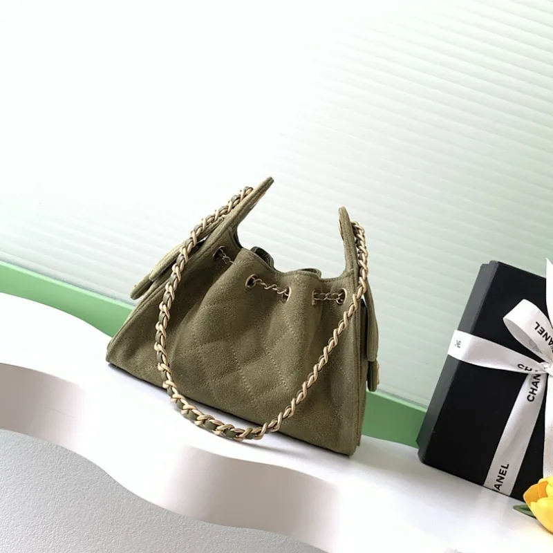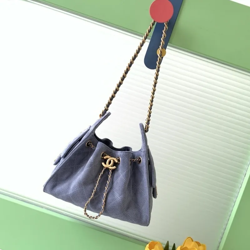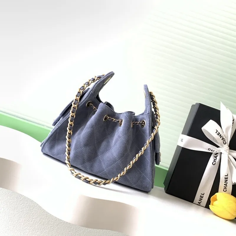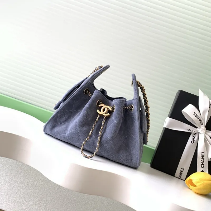 Chanel Hobo Shoulder Bag Hippie Style Vintage Gold Coin Button Drawstring Bucket Bag #A59440