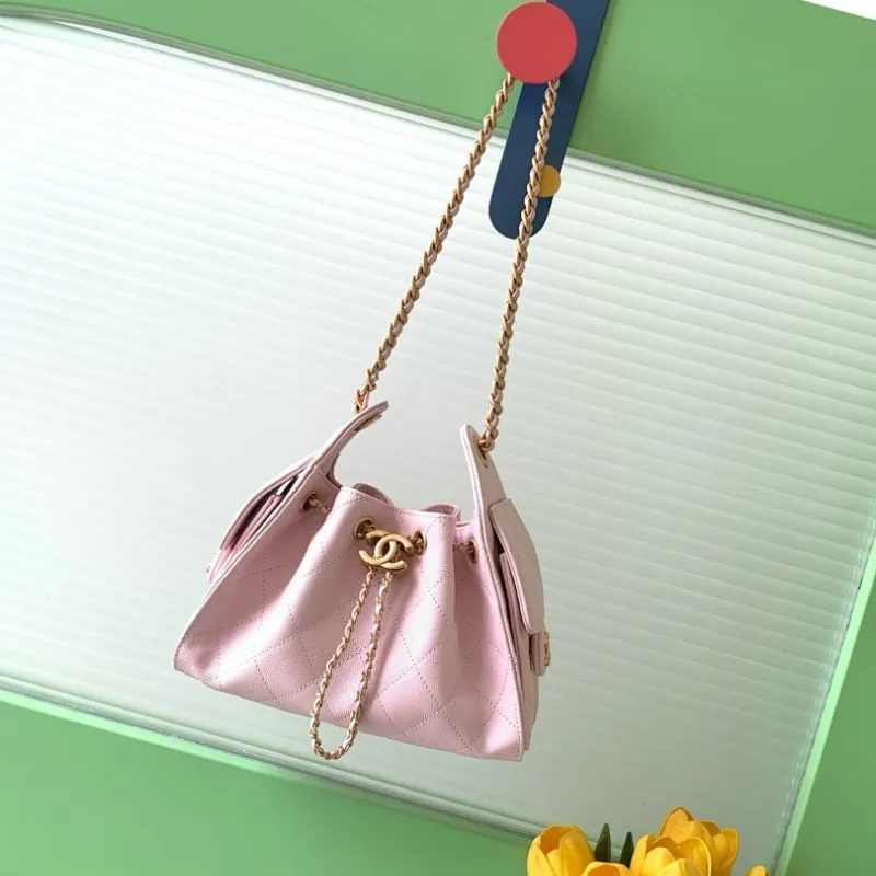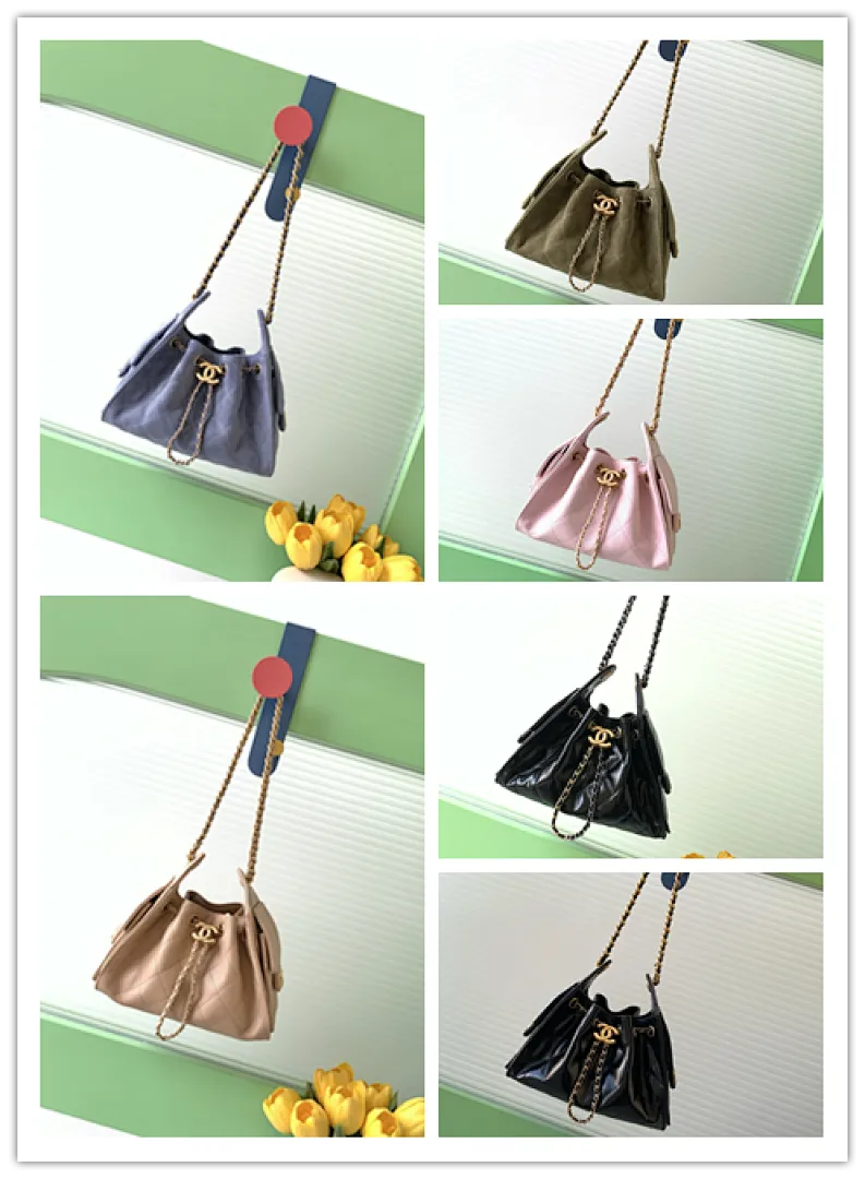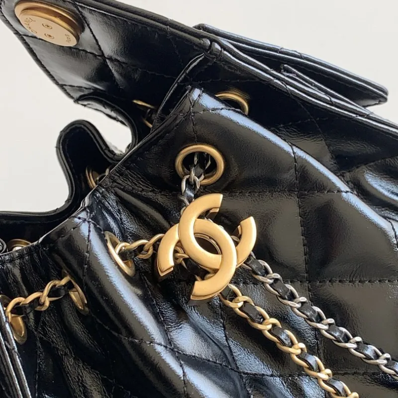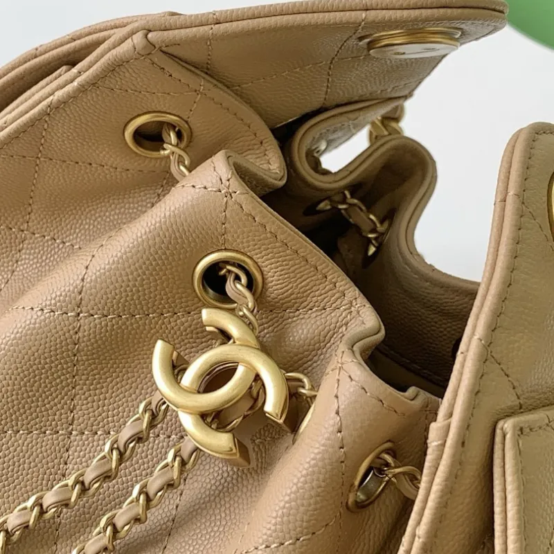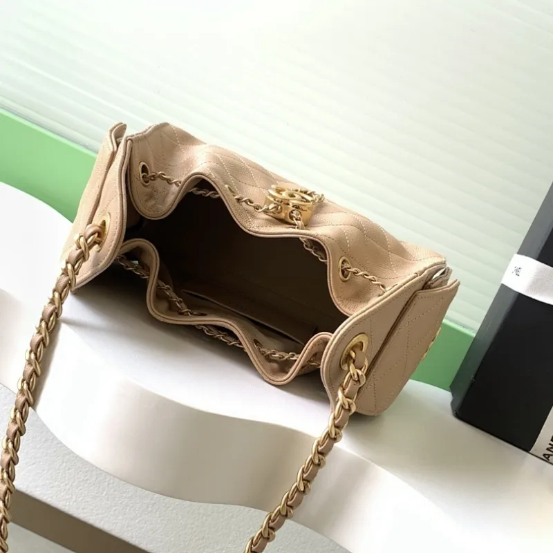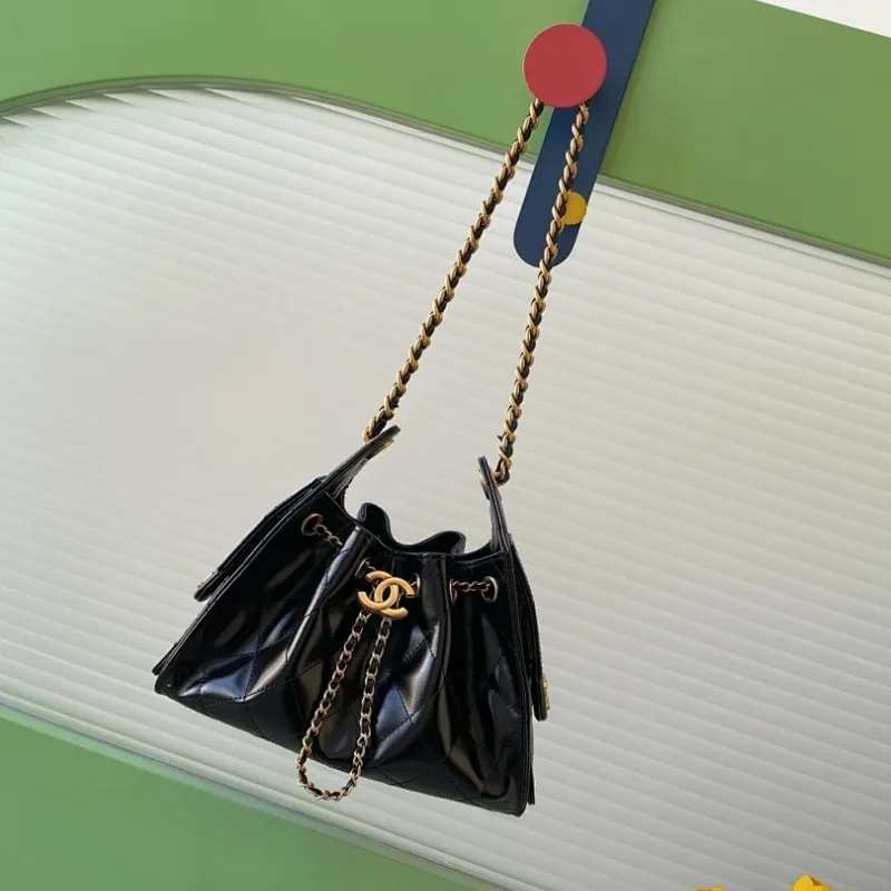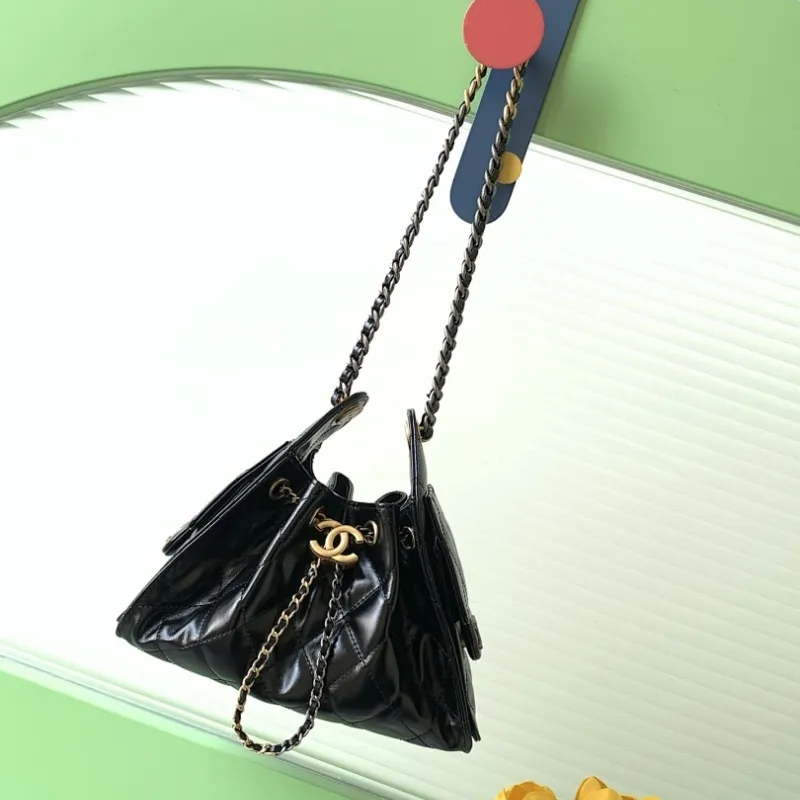 Chanel Hobo Shoulder Bag Hippie Style Vintage Gold Coin Button Drawstring Bucket Bag #A59440