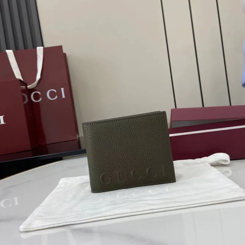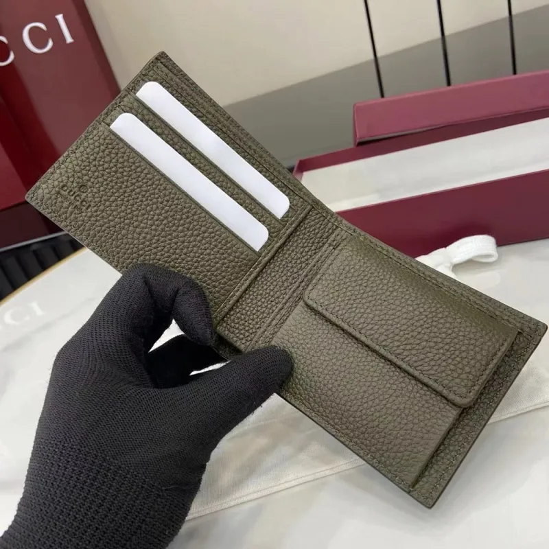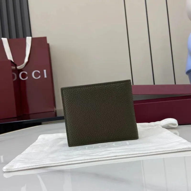 Gucci 835098 Green Grained Leather Bifold Wallet 11x9cm #A61869