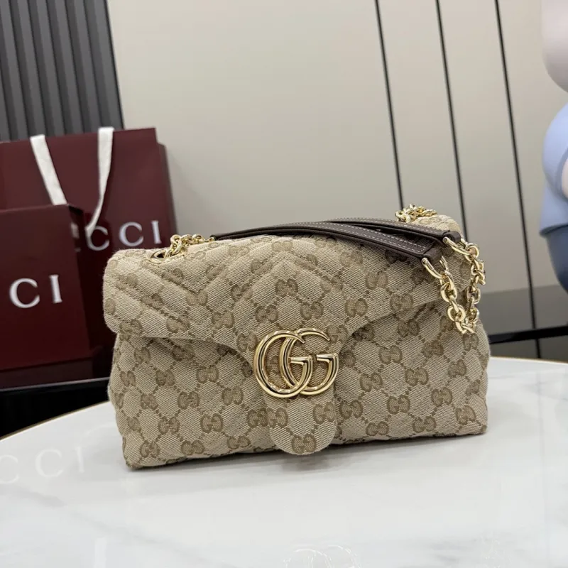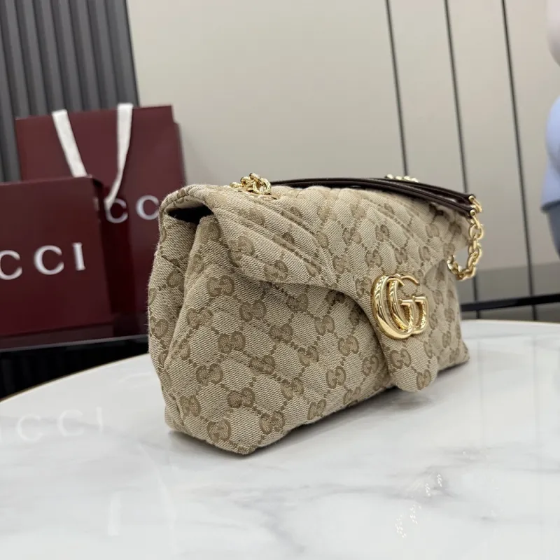 Gucci GG Marmont Quilted Canvas Chain Bag, 23 x 17 x 9 cm #A63210