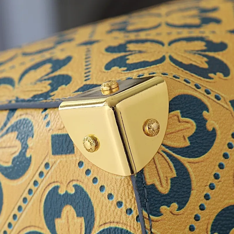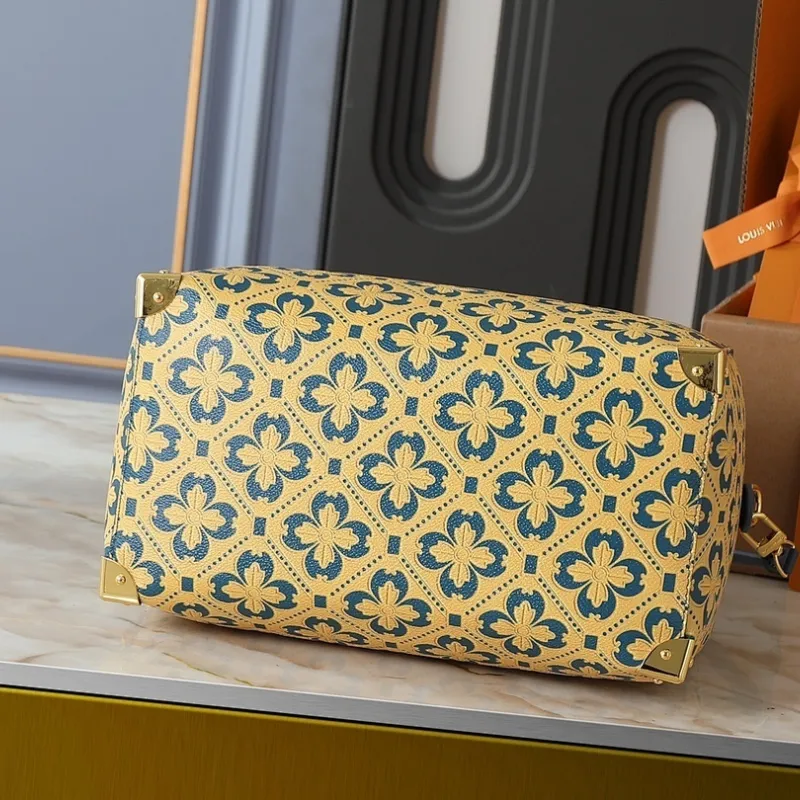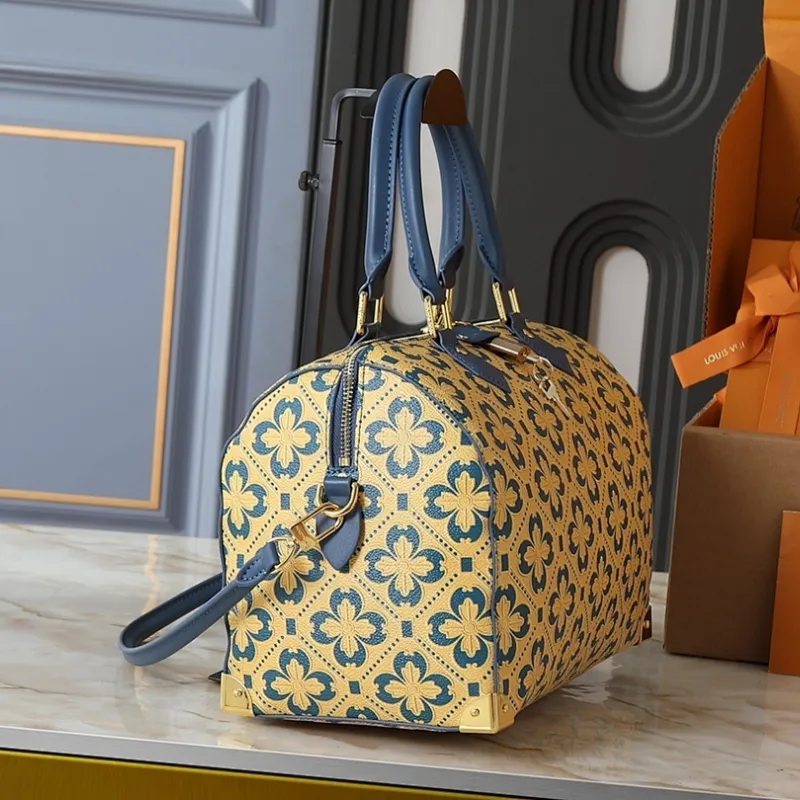2026 Yellow Clover Pattern Blue Accents Luxury Leather Stylish Travel bag #A60318