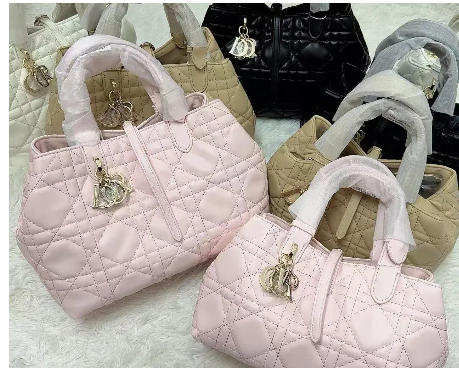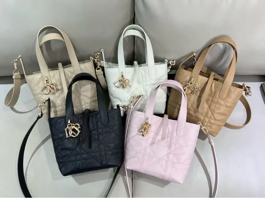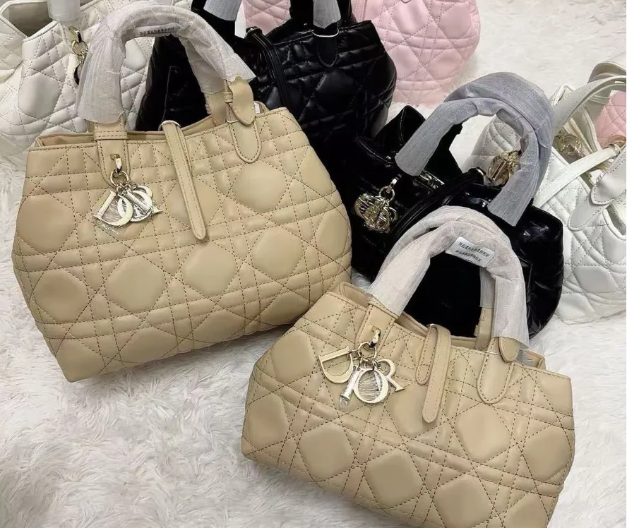 Dior Toujours Tote Bag Featuring Signature Cannage Quilting And Gold Charms #A60354