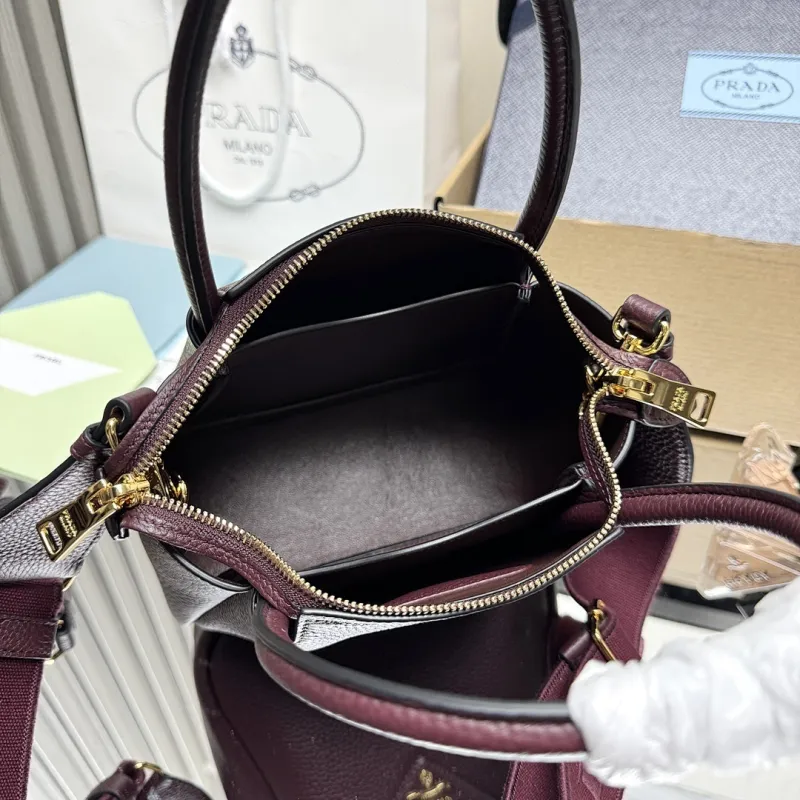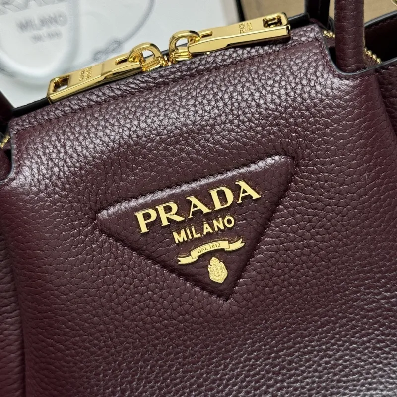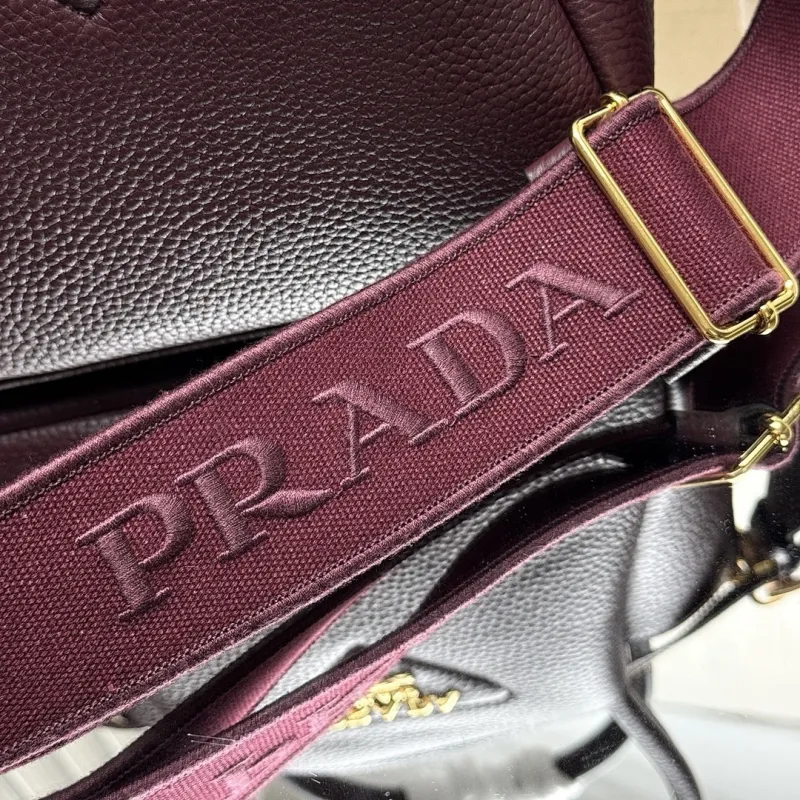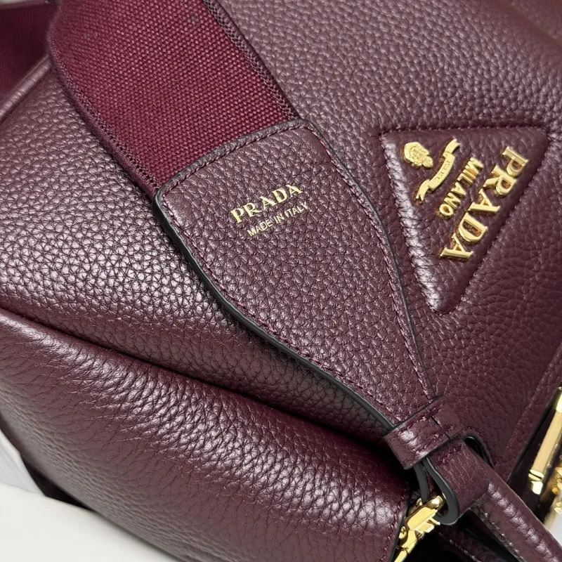 Prada 1BA362 Mini Leather Shoulder Bag - Burgundy Textured Top Version with Detachable Strap #A59502
