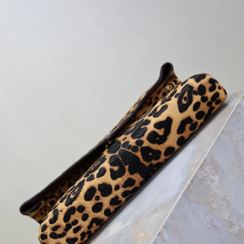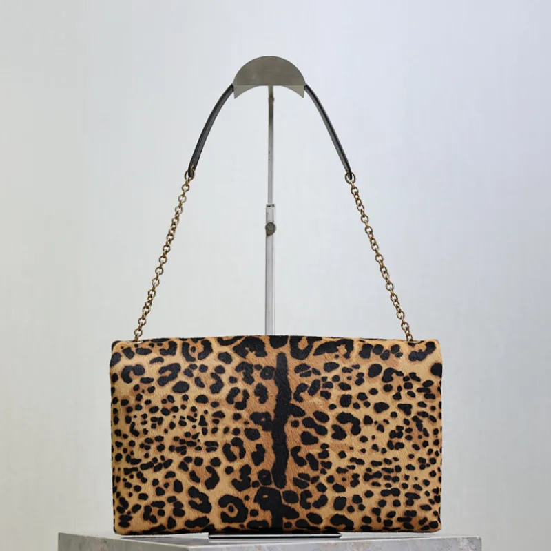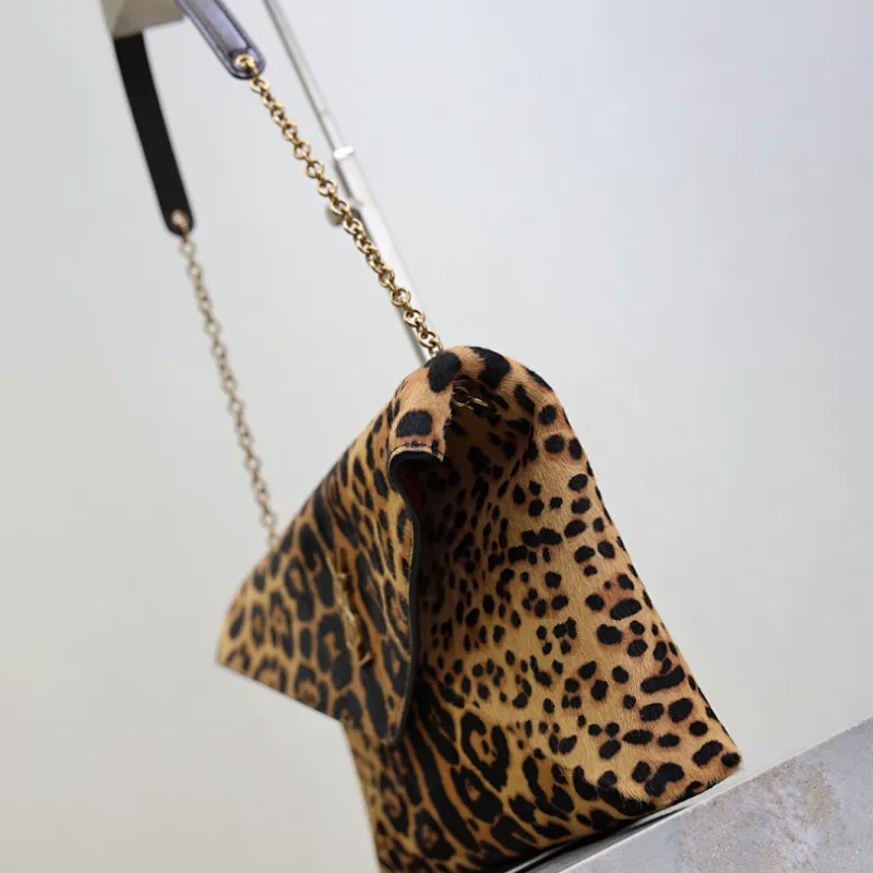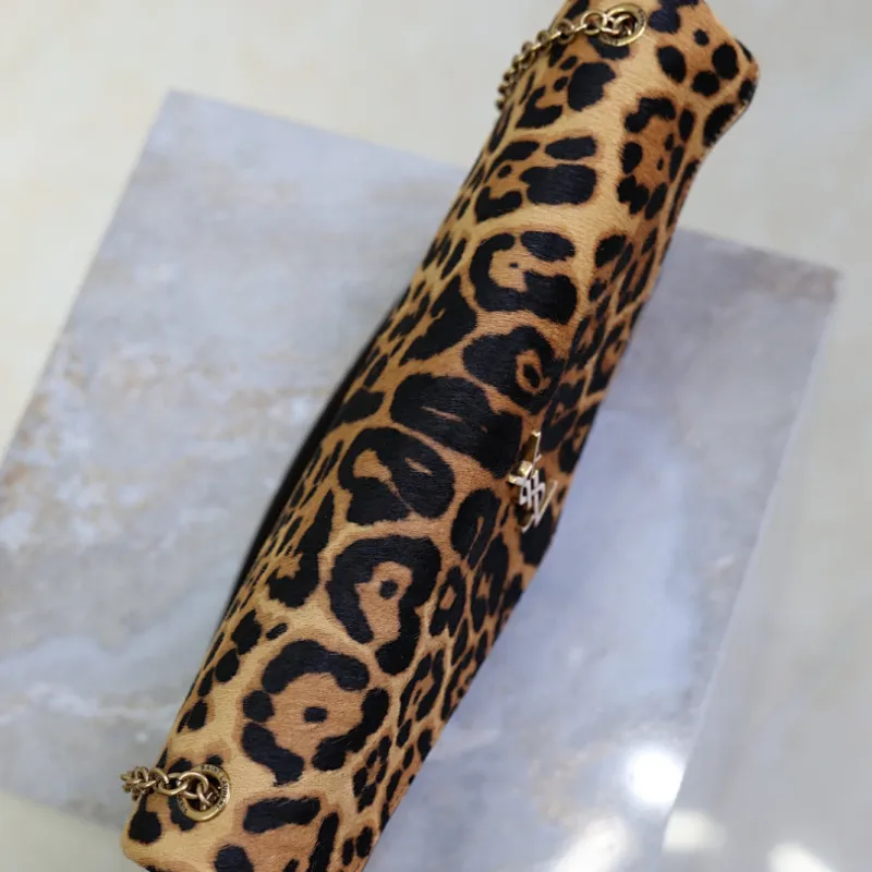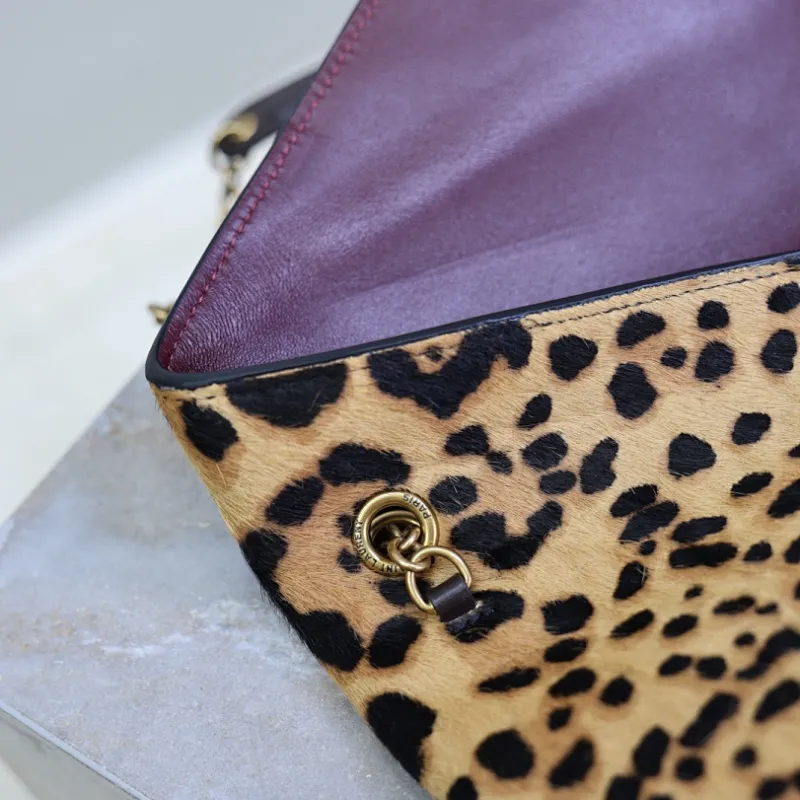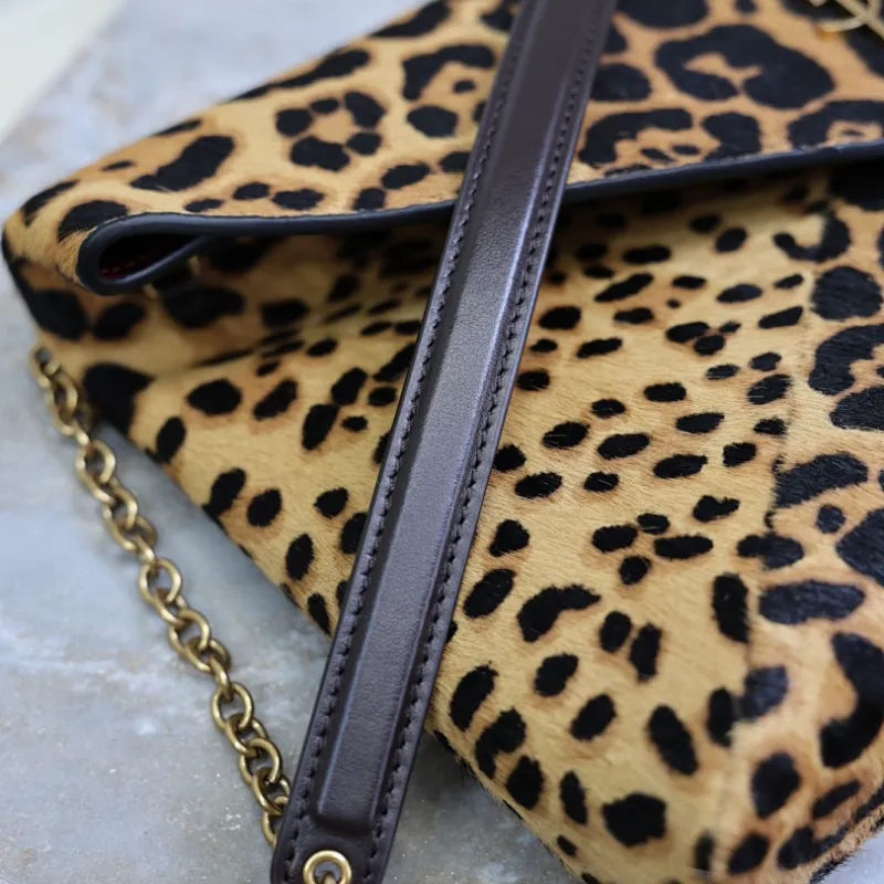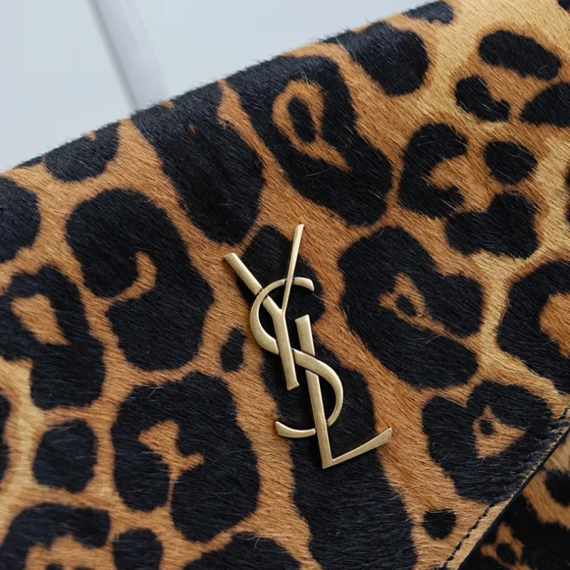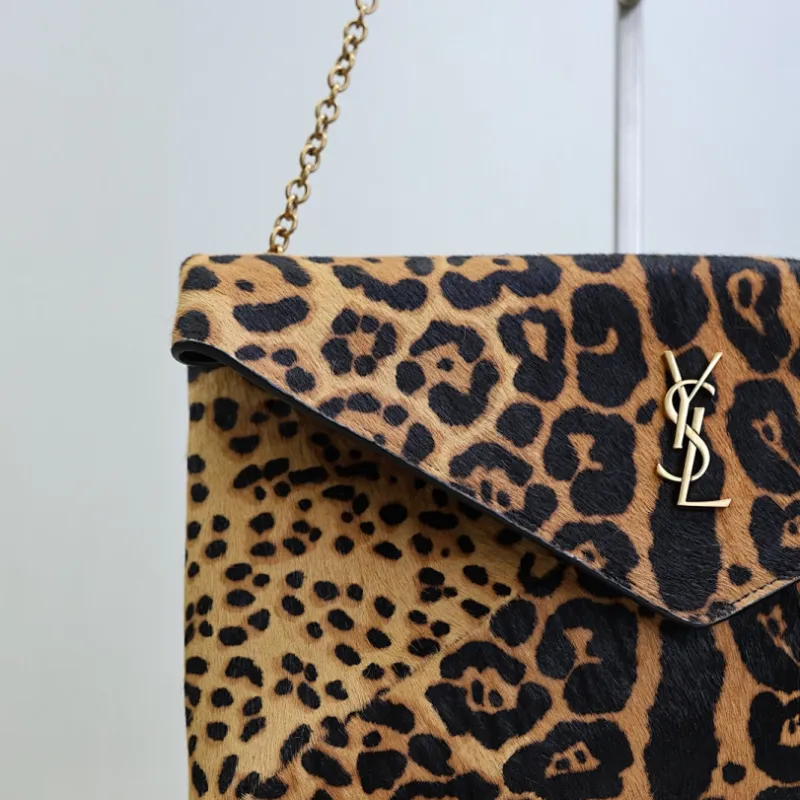 SAINT LAURENT Cassandra Envelope Shoulder Bag – Leopard-Print Calf Hair with Gold YSL Logo #A58764