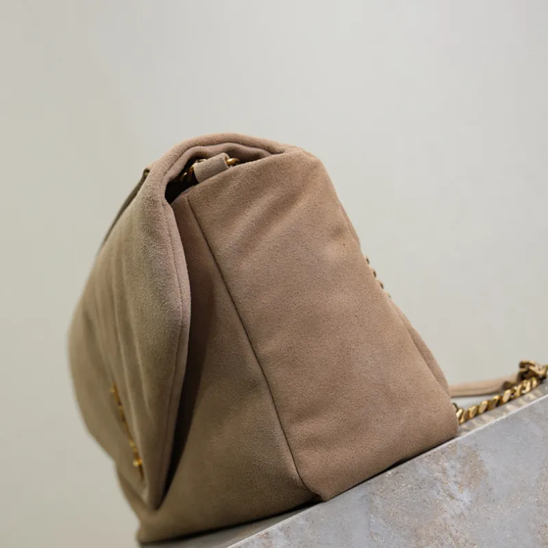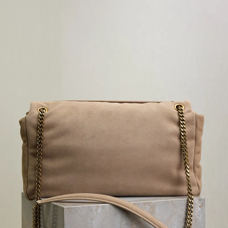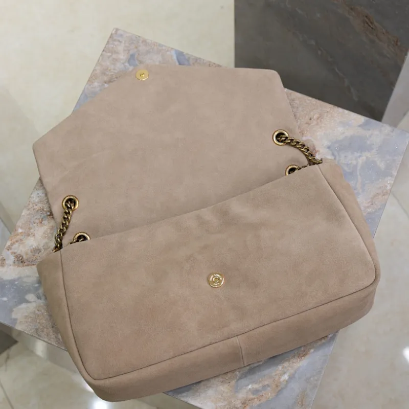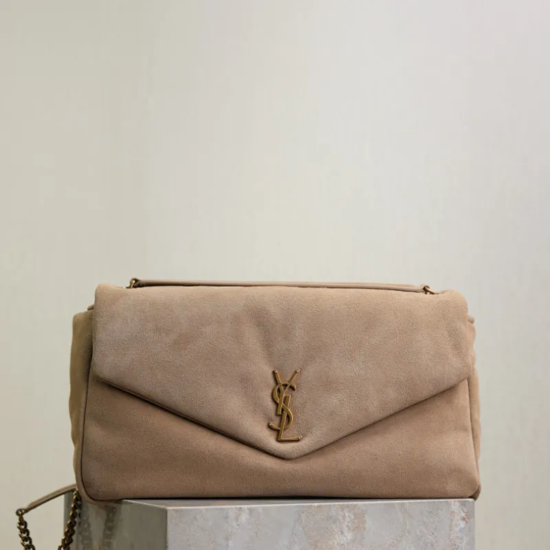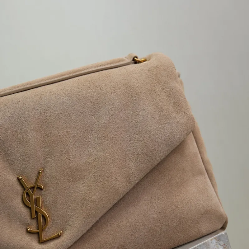 SAINT LAURENT Cassandra Envelope Clutch – Beige Suede Leather with Gold YSL Logo #A58763