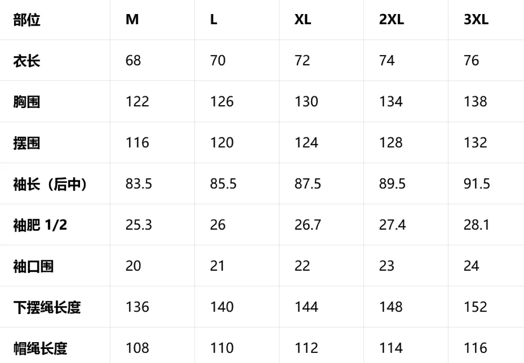 | Size | M,L,XL,XXL,3XL |