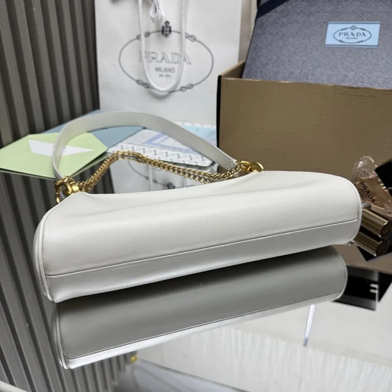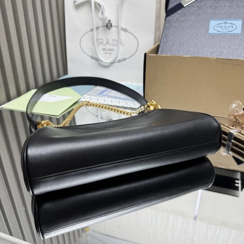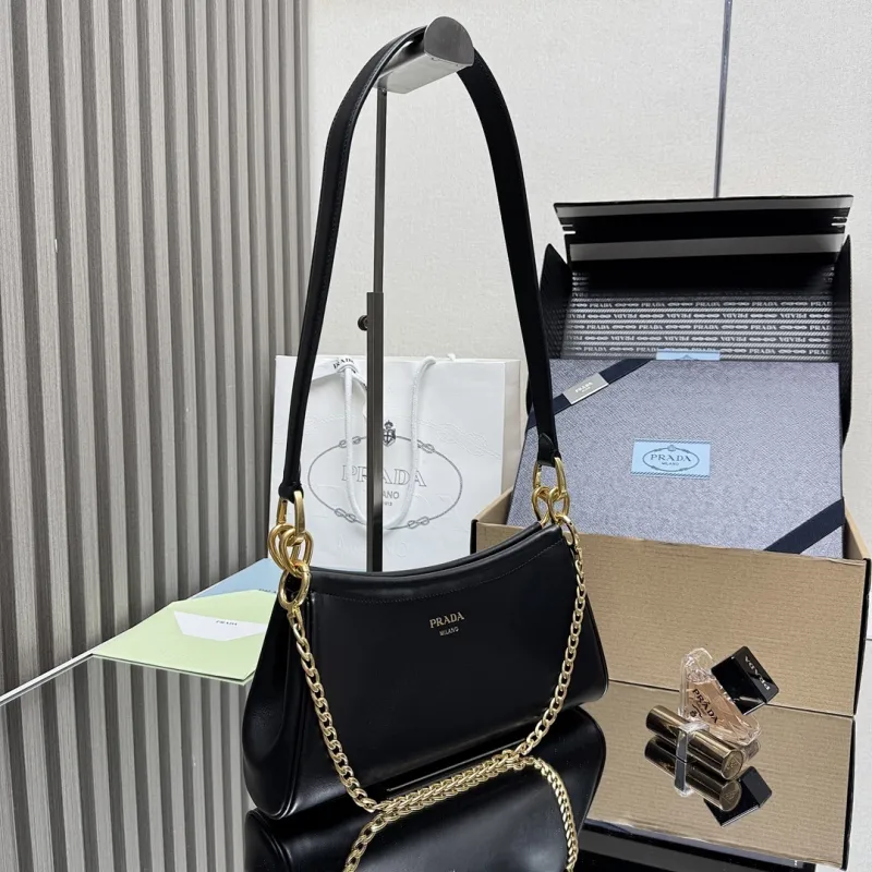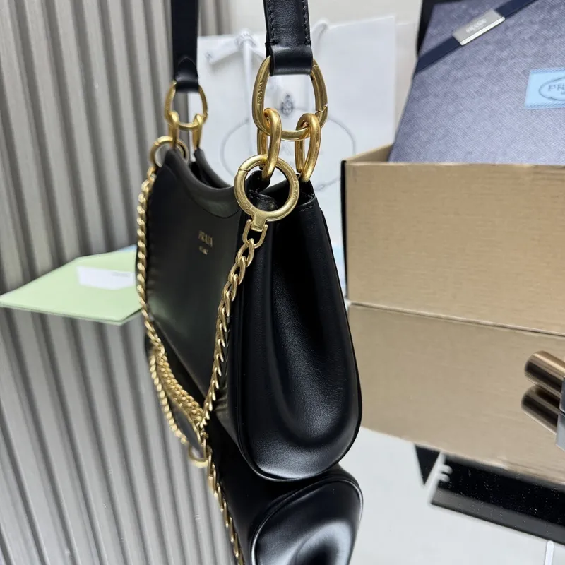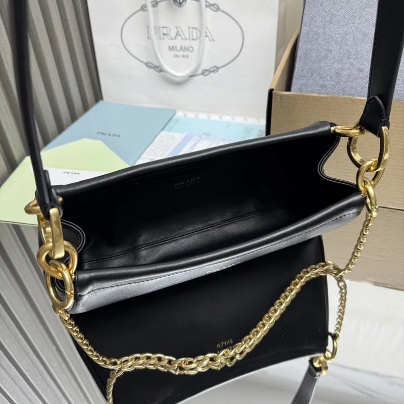 Prada 1BC261 2025 Autumn/Winter Retro Shoulder Bag - Black & White Top Version with Chain Detail #A59499