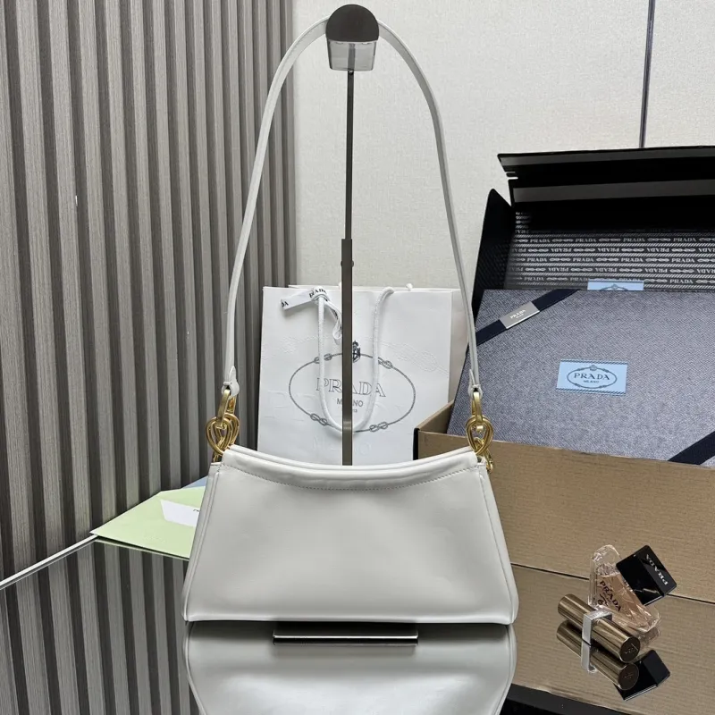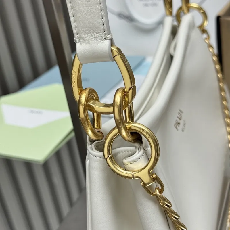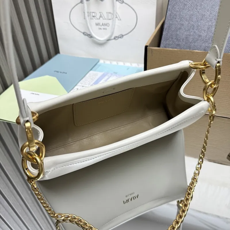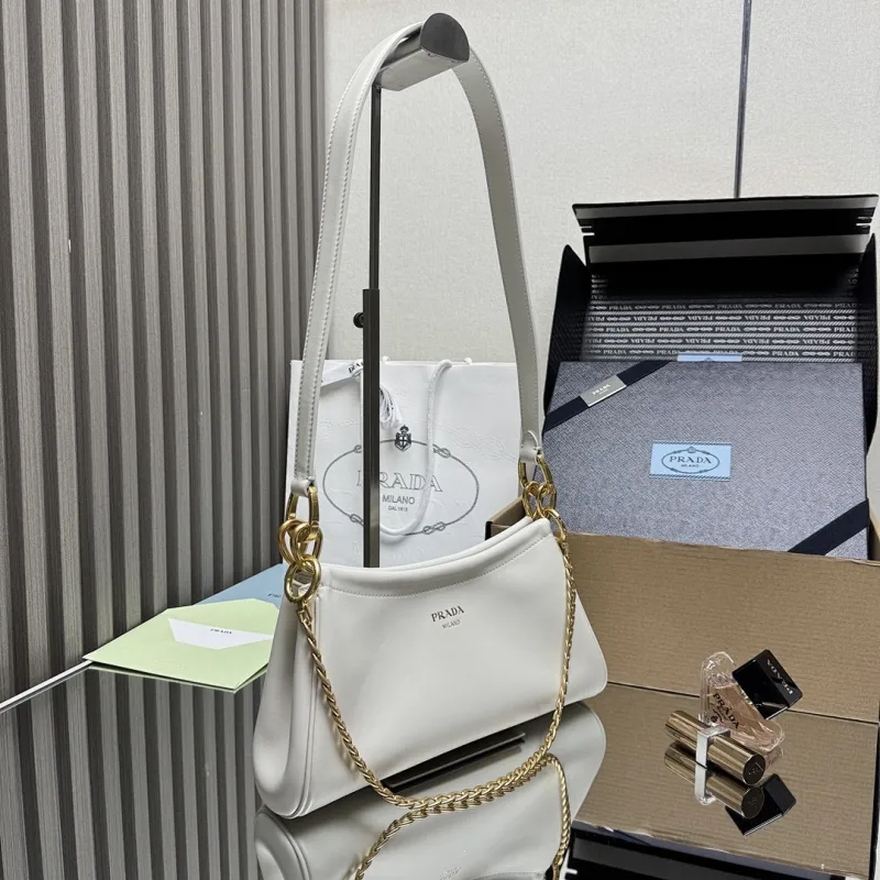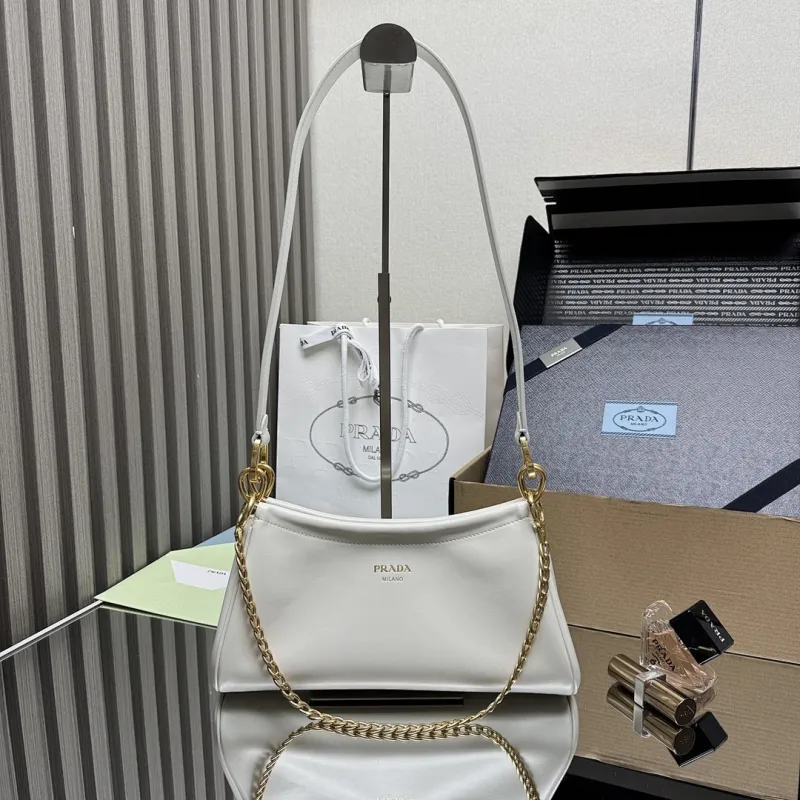 Prada 1BC261 2025 Autumn/Winter Retro Shoulder Bag - Black & White Top Version with Chain Detail #A59499