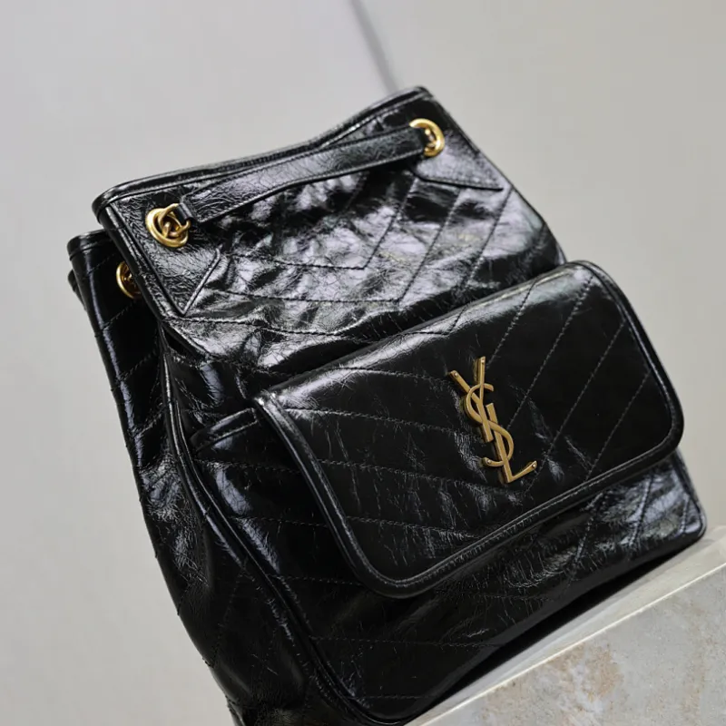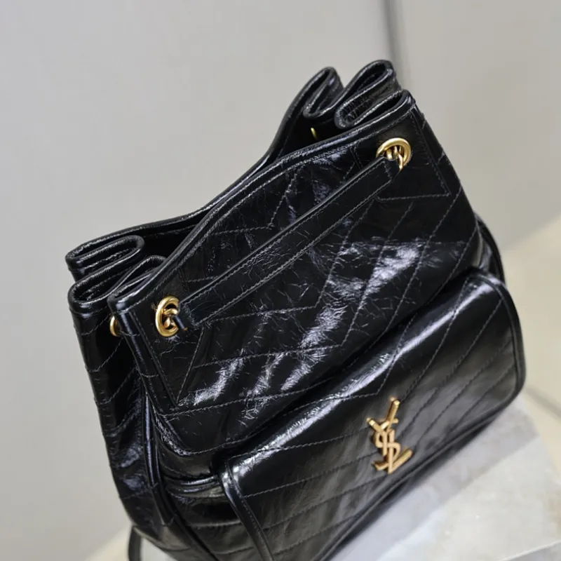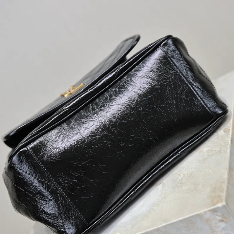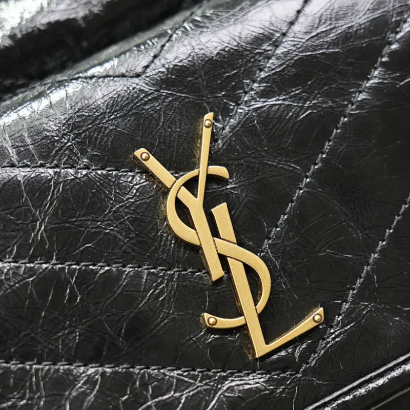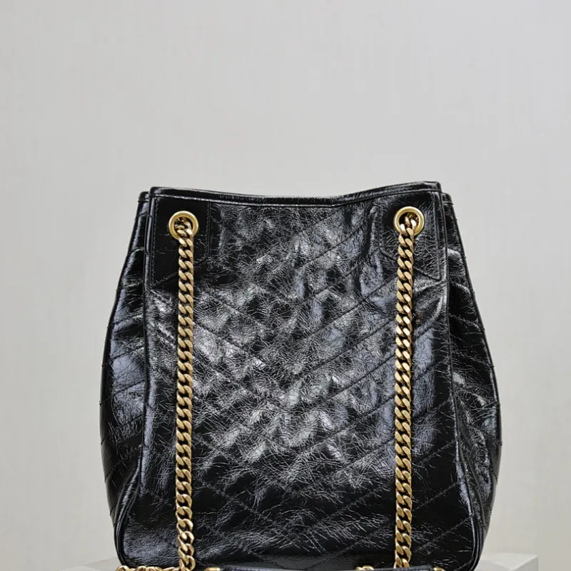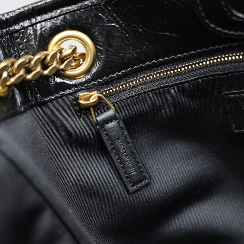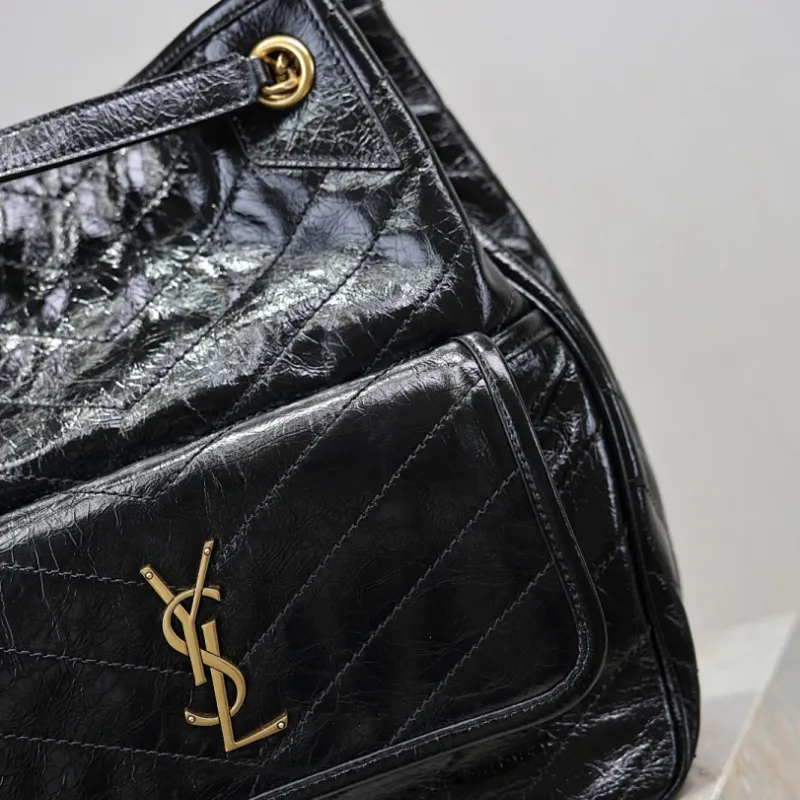 Saint Laurent Niki Crinkled Leather Tote (862295) - Logo Detail, Adjustable Strap, 25×30×8-12cm #A59988