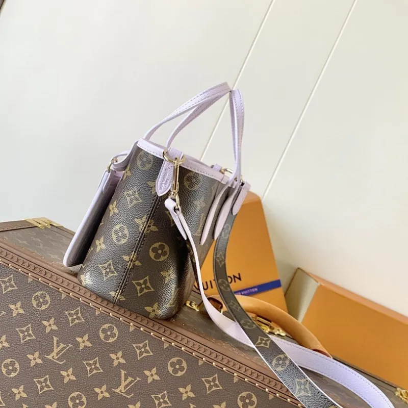 Louis Vuitton M25656 Neverfull Bandoulière Inside Out BB Tote Bag - Purple Monogram Canvas & Leather with Microchip #A60520