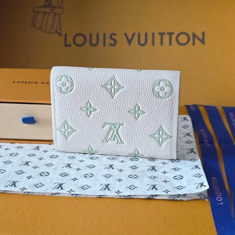 LV M28249 Compact Short Wallet | Monogram Embossed Leather | Green & Cream #A60908